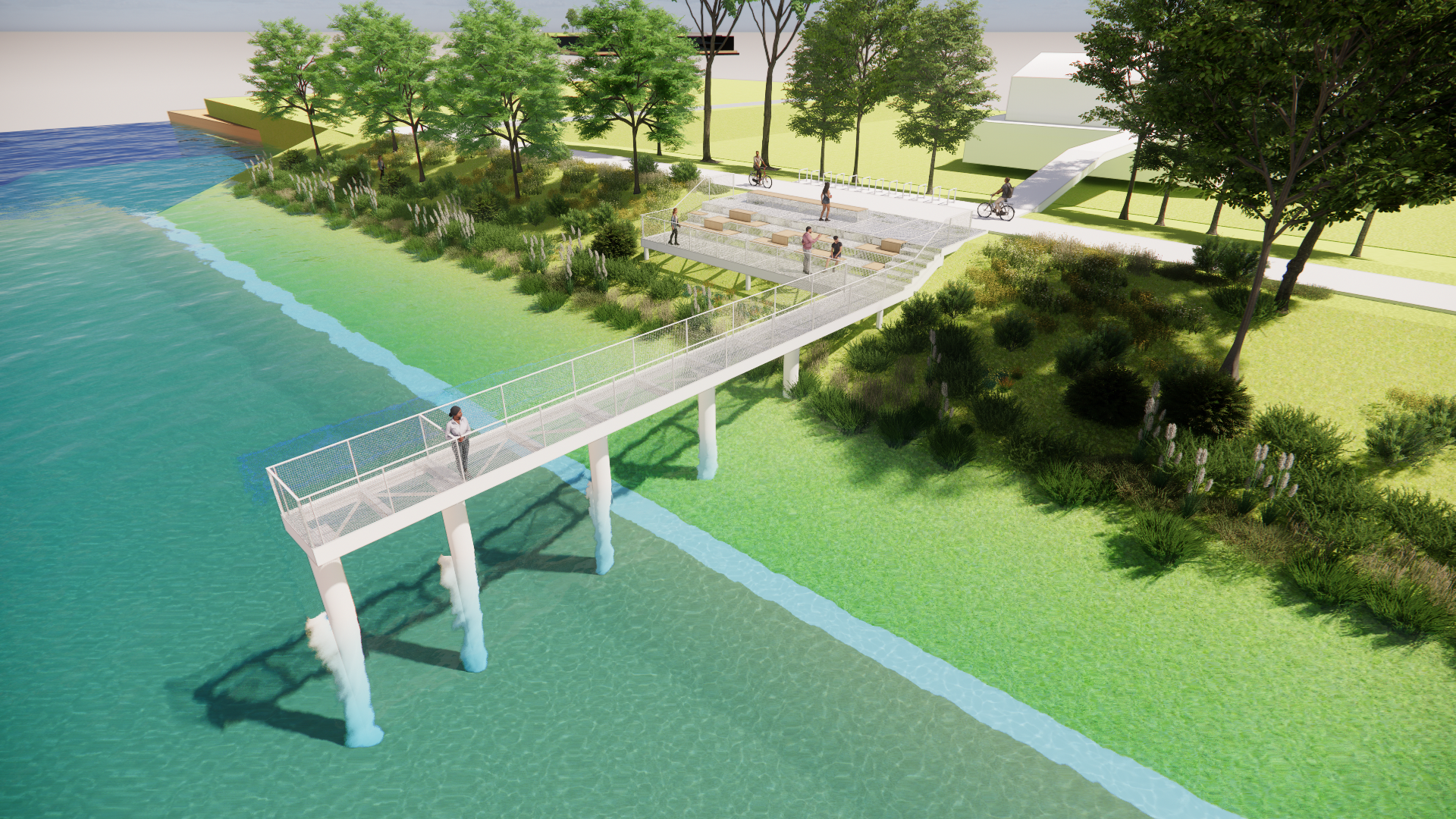 De Schelde wordt geflankeerd door groene boorden. Ook die krijgen binnen het masterplan een opwaardering. Bedoeling: jou er nóg meer van laten genieten. Daarom worden de groene zones gedeeltelijk toegankelijker gemaakt.