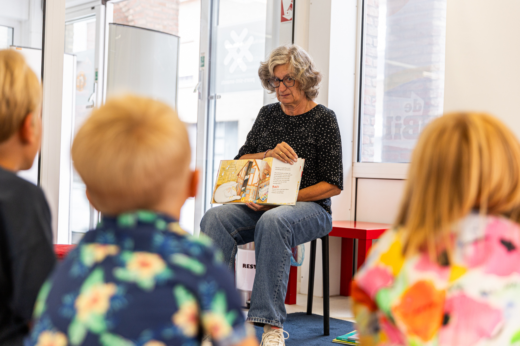 “Het is belangrijk om op het juiste tempo te lezen. En vooral: om het interactief te maken. Ik zoek oogcontact met de kinderen, stel hen vragen, laat ze iets aanwijzen in het boek, ... En verslapt de aandacht? Dan laat ik ze eens zingen of dansen als tussendoortje.”